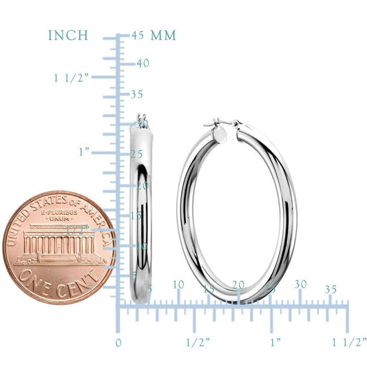 14k REAL White Gold 4.00MM Thickness Classic Polished Round Tube Hoop Earrings with Snap Post Closure