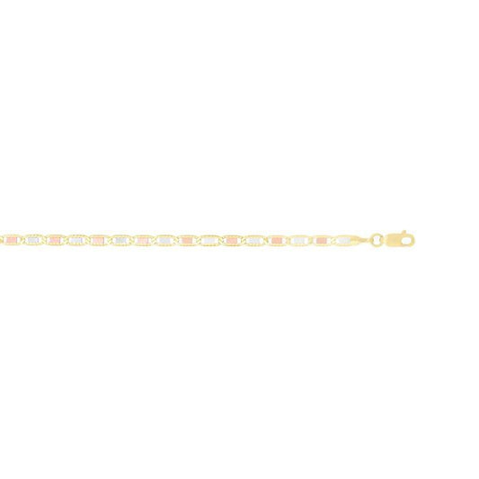 14k Solid Gold 2.6mm TricolOr Valentino Chain with Lobster Claw Closure